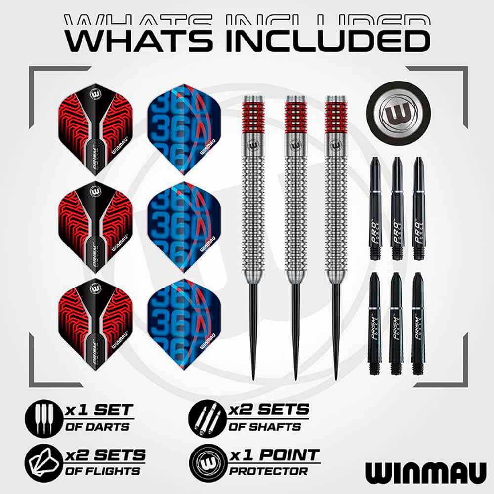 El barril cuenta con un grip excelente, gracias a su pequeñas ranuras fresadas en el metal aportara al juego un muy buen agarre. La zona de agarre está distribuida a lo largo de todo el cuerpo del dardo, permitiéndote decidir dónde sujetar el dardo. La punta del cuerpo del dardos es redonda y lisa, lo que facilita una suelta suave del dardo. El equilibrio es este dardos esta en el centro ponderado, lo que distribuye el peso de forma óptima para un lanzamiento estable y preciso . La valoración de agarre es de 3 sobre 5, indicando que estos dardos ofrecen un agarre medio, perfecto para jugadores que no prefieren un grip demasiado agresivo. Pack completo para cualquier jugador de dardos Los dardos Winmau Team 360 Lewis Cook vienen con dos juegos de shafts y dos juegos de flights en un atractivo diseño en rojo y plata, a juego con el barrel. También incluyen un protector de punta para que los dardos se mantengan en buen estado por más tiempo y sufran menos daños. Estos dardos han sido diseñados en colaboración con el jugador Lewis Cook y son ideales tanto para jugadores principiantes como avanzados que buscan un set fiable y con estilo.