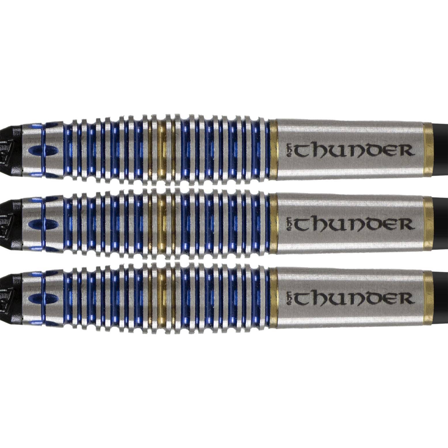 Una de las características a resalta de este modelo de dardos es su cuerpo corto de 44mm y con forma abombada, cuerpo cacabod con nitrito de titanio azul y dorado