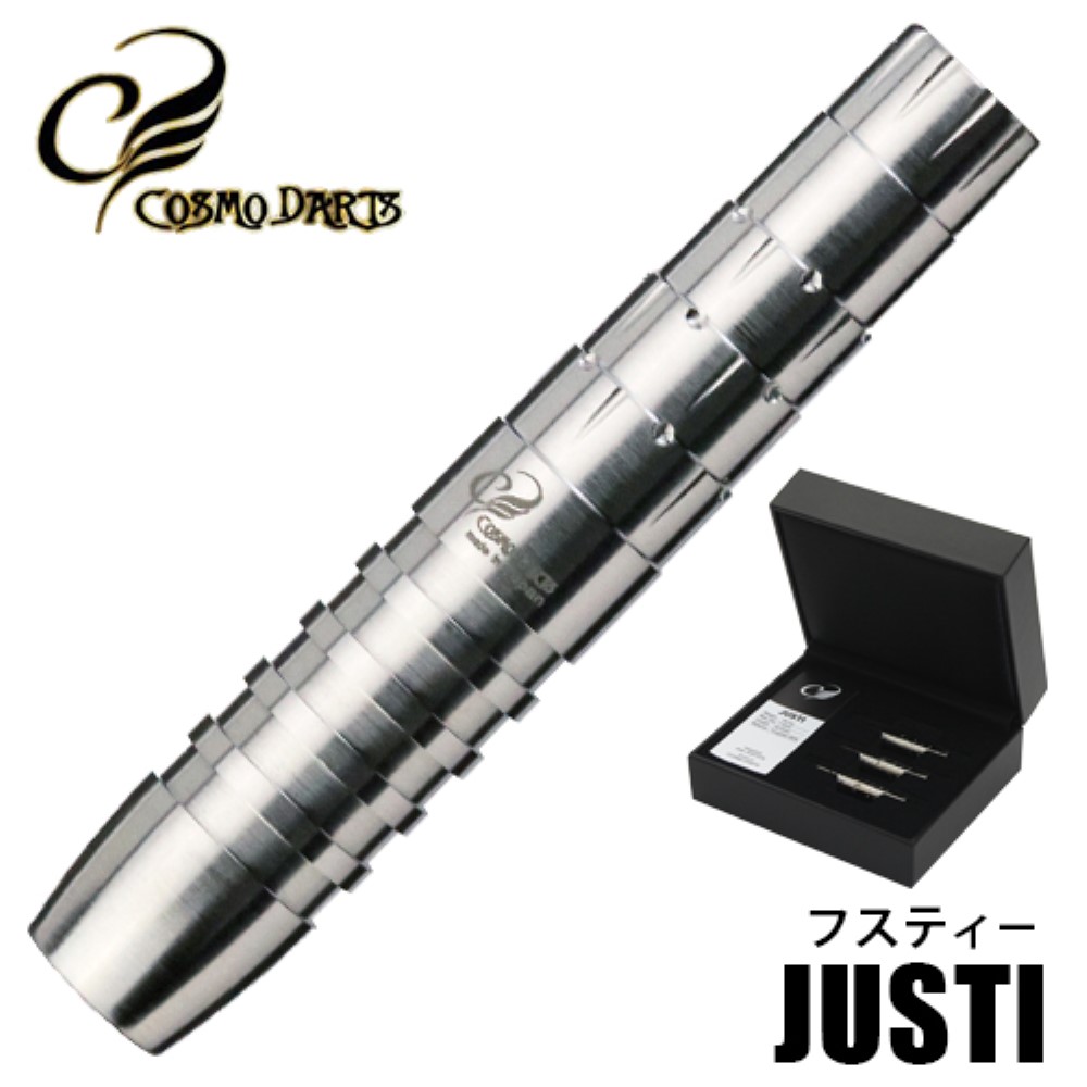 Juego de dardos fabricado por Cosmo Darts, modelo de dardo The Justi , dardos diseñados por Jose Justicia con 18 gramos, la medida del dardos es de 40mm x 7.3mm y tiene un porcentaje de tungsteno de un 90%.