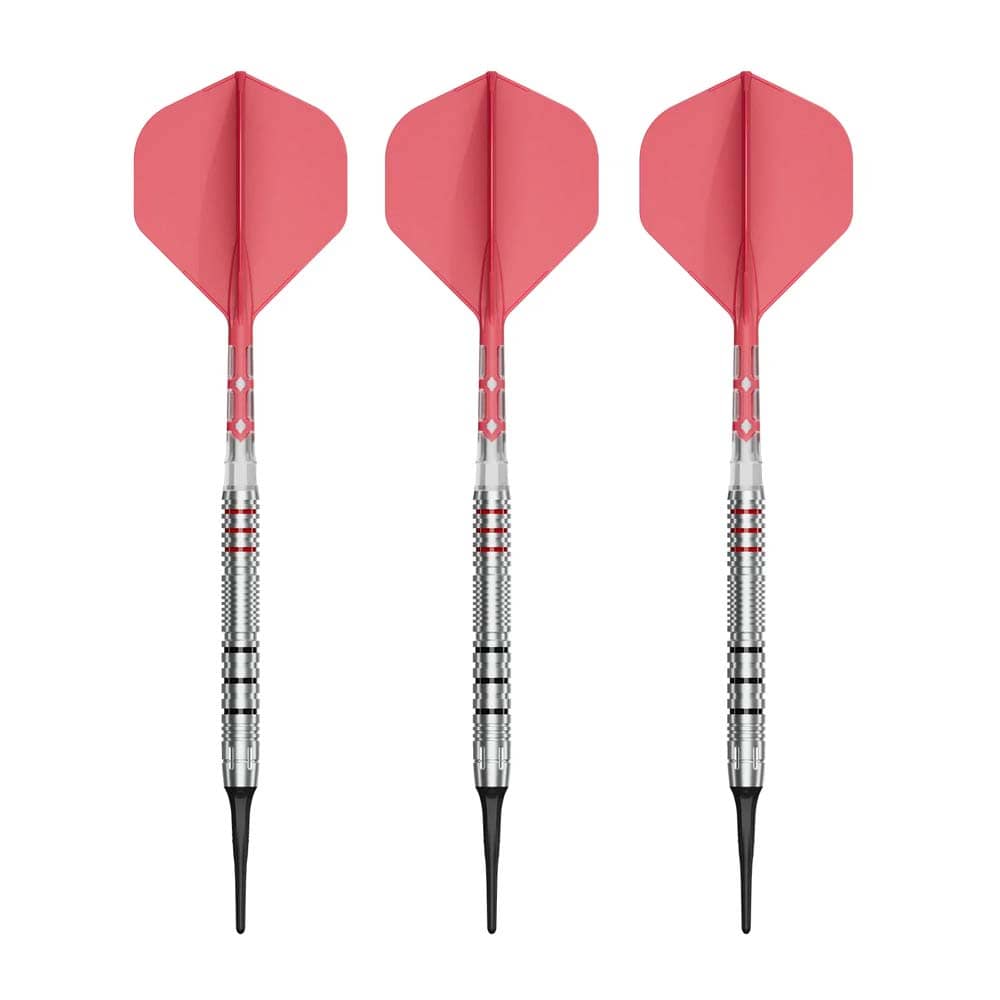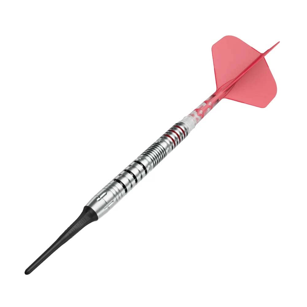 El dardo viene con plumas ROST T19 (forma estándar grande, tamaño M, proporciona la máxima sustentación y la mayor estabilidad en vuelo).