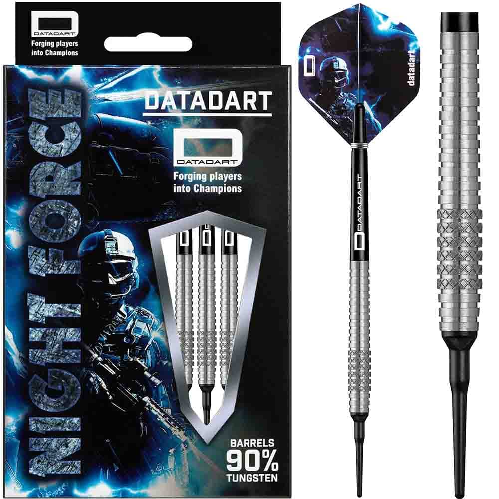 DESCRIPCIÓN:Juego de dardos de la marca inglesa Datadart modelo Nigh Force, el juego de dardos Nigh Force a sido fabrica con Tungsteno de gran calidad con un 90%, dardos fabricado con agarre anillado ancho con refuerzo de agarre delantero con corte shark, dardos diseñados para una mínima resistencia al aire y una precisión máxima.