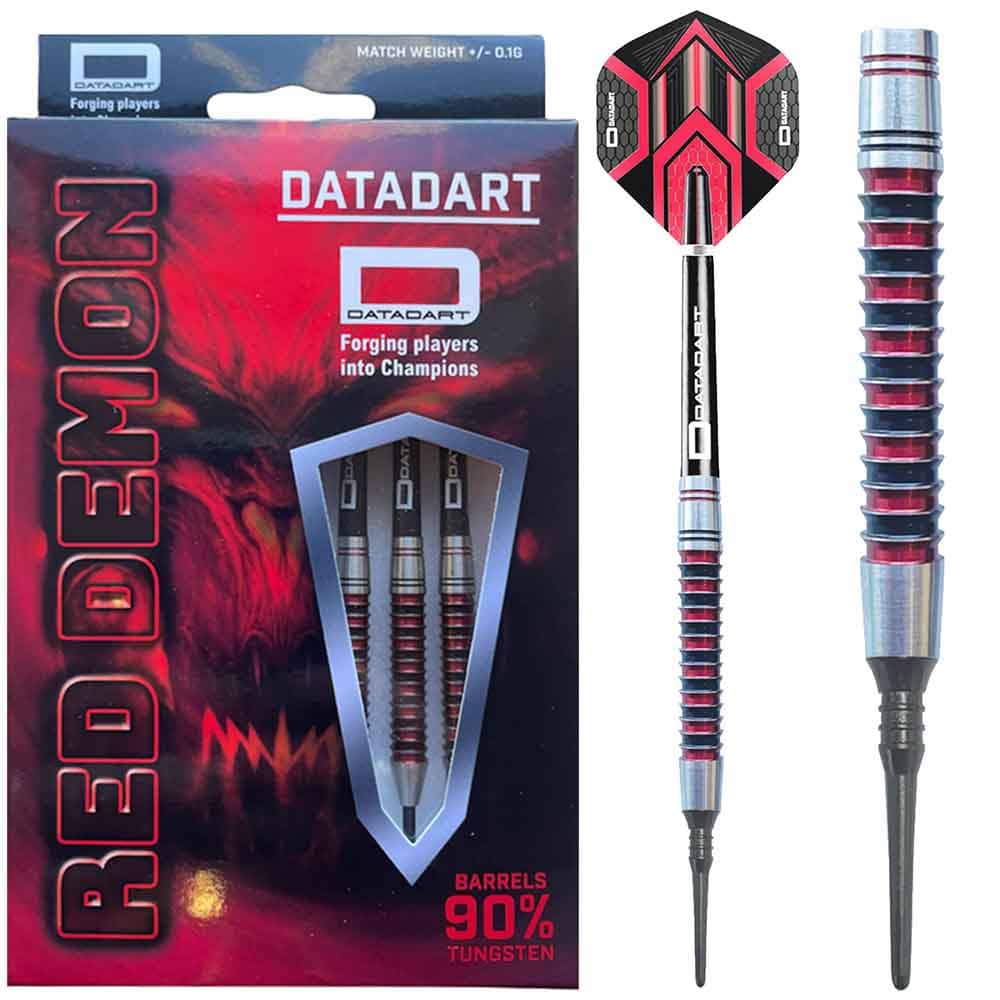 DESCRIPCIÓN:Juego de dardos de la prestigiosa marca inglesa Datadart modelo Red Demon, dardos con un caño recto con anillos galvanizados a lo largo de toda su longitud. Los anillos de agarre han sido acabado en color rojo y negro para resaltar respecto el tungsteno natural y asi ofrecer un dardos increíble y muy llamativo visualmente.