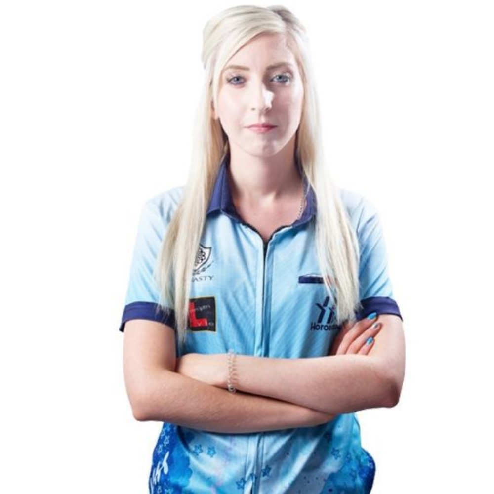 Este diseño es una edición limitada de la jugadora L-Style Dynasty Fallon Sherrock que se ha atrevido a crear este nuevo diseño de la serie A Flow con un acabado elegante gracias a sus líneas grabadas en azul.