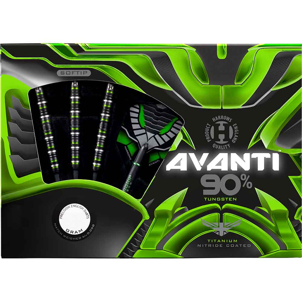 DESCRIPCIÓN:Dardos de punta plástico fabricados por Harrows Darts con 18 gramos de peso total, dardos modelo Avanti 90% de tungsteno.