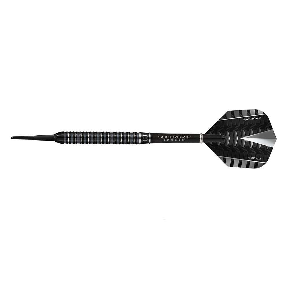 El dardo se compone por 1 set de 3 dardos Noctis , 1 set de 3 cañas supergrip, 1 set de 3 plumas Harrows y 1 set de 3 puntas 4mm 2ba.
