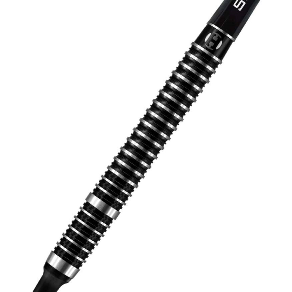 Dardos con un moldeado por inyección para acabados mas precisos y perfectos, agarre de anillo de precios que cubren todo el barril para que todo el tenga un agarre perfecto, cuerpo fabrica de modo paralelo con un equilibrio en su centro del barril y acabado con nitruro de titanio negro muy resistente.