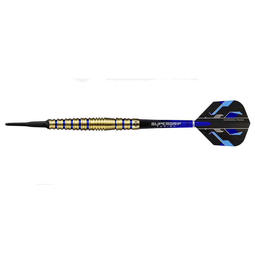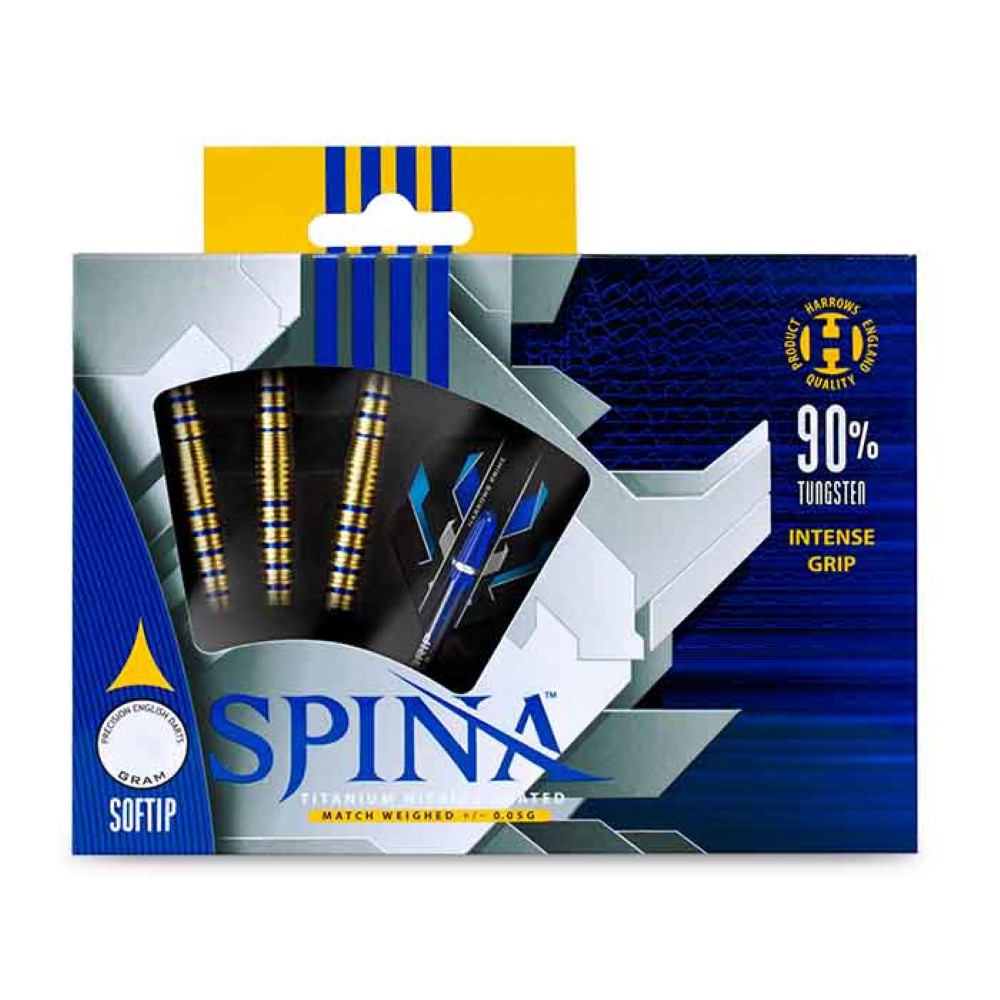 DESCRIPCIÓN:Dardos de gran calidad fabricados por Harrows Darts, modelo Spina, dardos con un barril total diferente a los que has probado, gracias a su agarre de anillas con varios tipos de separación, parte del barril incorpora el sistema de agarre tipo shark invertido, el acabado del dardos es color dorado y con anillos en azul, dardo acabado con nitrito de titanio.