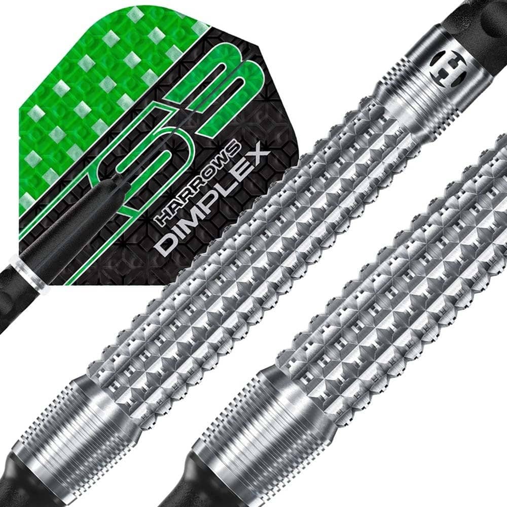 El dardos se compone por 1 set de 3 cuerpos Harrows Darts Dimplex S3 Tapered , 1 set de 3 cañas Harrows, 1 set de 3 plumas Darts y 1 set 3 de puntas