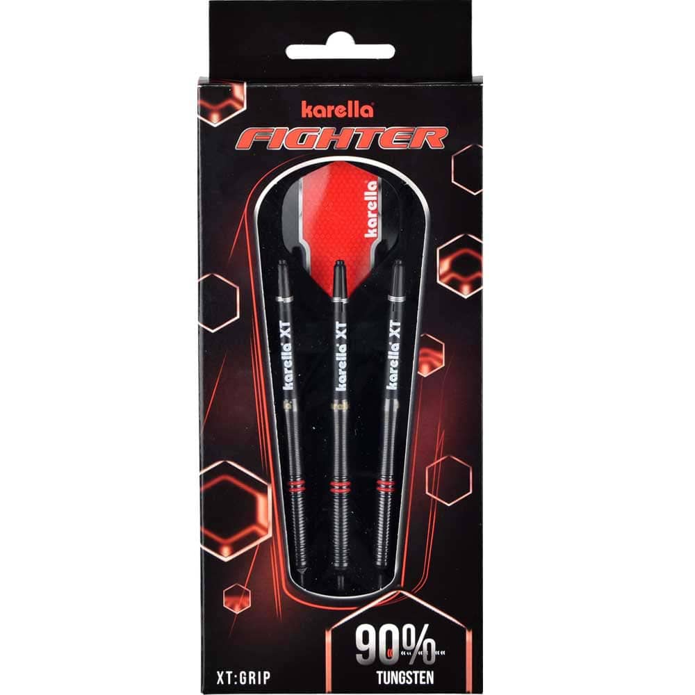 El juego de dardos se compone por 1 set de 3 cuerpos Karella Fighter , 1 set de 3 cañas, 1 set de 3 plumas y 1 set de 3 puntas 2ba