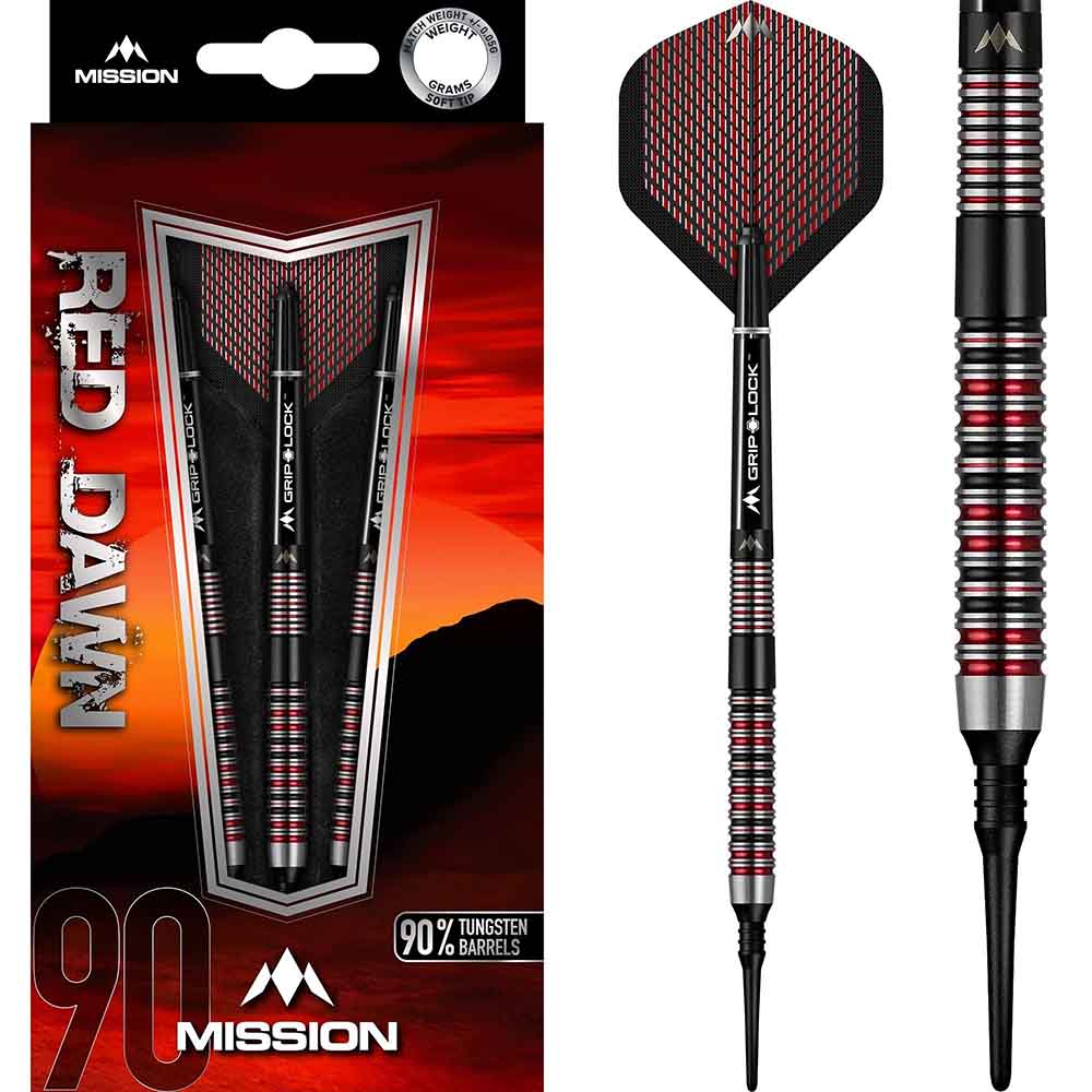 DESCRIPCIÓN:Dardos de tungsteno de punta blanda Mission Red Dawn. Características: 90 % barriles de tungsteno con anillo recto, 1 juego de plumas de misión, 1 juego de ejes de misión con anillos S-Lock, protector de punto.