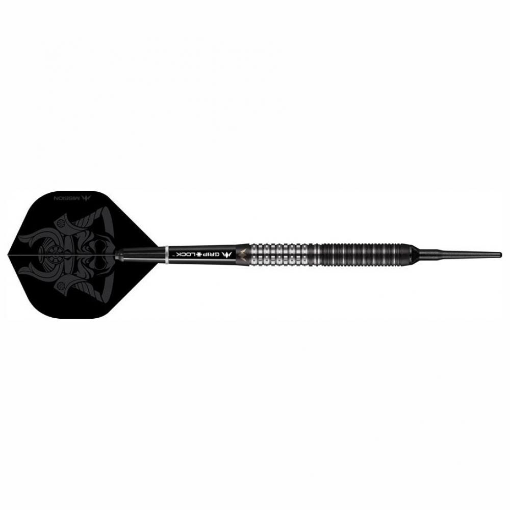 El modelo Kuro M1 es un dardos con un diseño increíble, con detalle en nitrito de titanio negro y con un diseño de agarre increíble con anillado fino en la parte de punta y un diseño propio Mission en la zona del cuerpo de la caña.