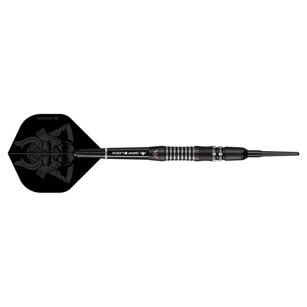 El juego de dardos se compone por 1 set de 3 cuerpos de dardos Mission Kuro 95% M2 , 1 set de 3 cañas, 1 set de 3 plumas y 3 puntas de plástico.