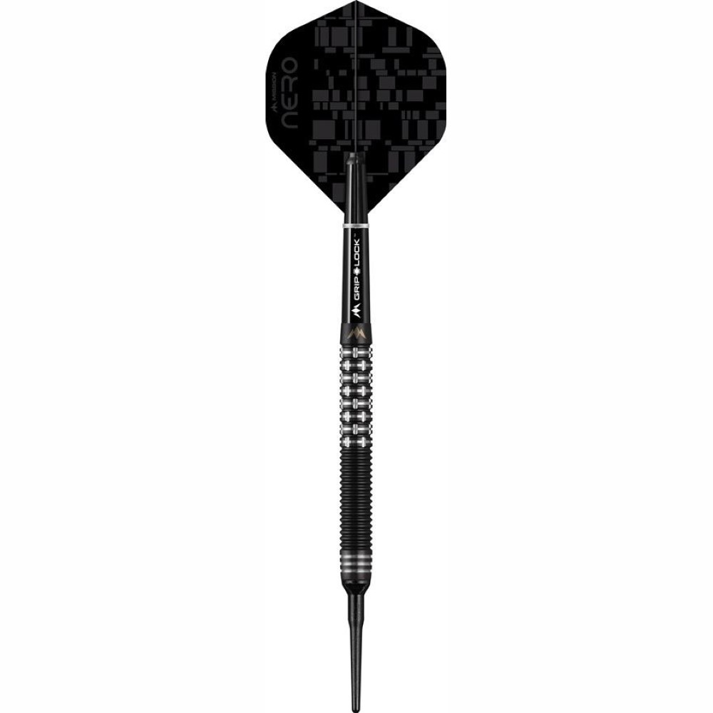 El modelo Nero M1 es un dardos con un diseño increíble, con detalle en nitrito de titanio negro y con un diseño de agarre increíble con anillado fino en la parte de punta y un diseño propio Mission en la zona del cuerpo de la caña.