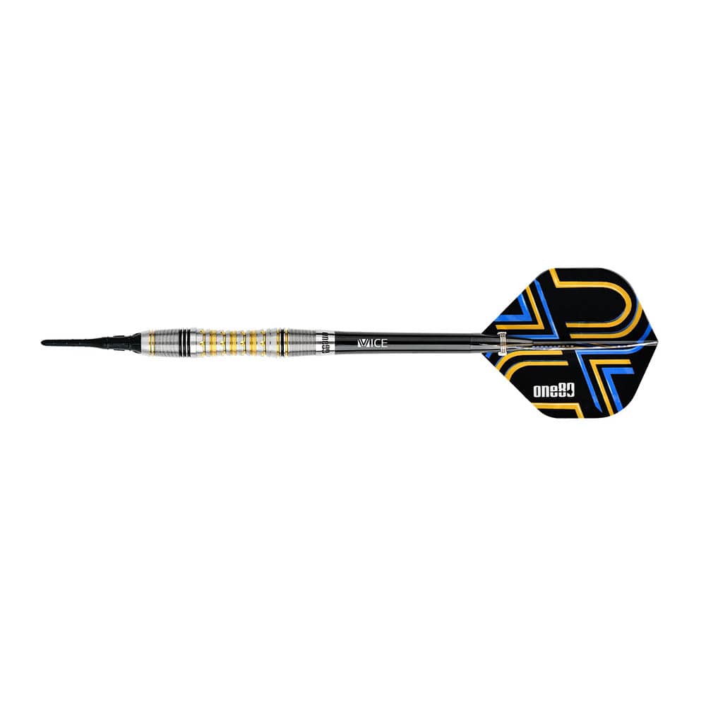 DESCRIPCIÓN:Dardos de gran calidad fabricados por la marca Alemana One 80, dardos con barril muy bien trabajado con varios tipos de agarre, con excelente rebaje uñero en el centro que aportara una buena cogida y tacto, dardos acabado con varios anillos pintados con nitrito de titanio dorado y negro