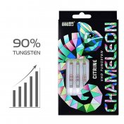 El juego de dardos Chameleon Citrine se compone por 1 set de 3 cuerpos, 1 set de 3 cañas Vice, 1 set de 3 plumas y 1 set de 3 puntas 2ba.