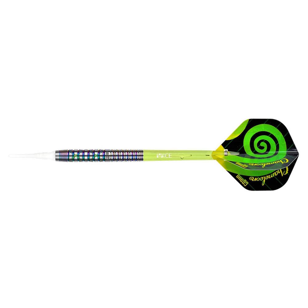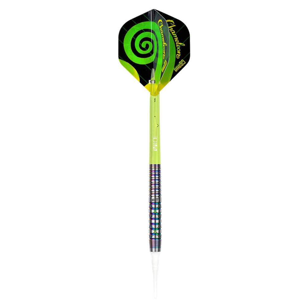 El juego de dardos Chameleon Lazuli se compone por 1 set de 3 cuerpos, 1 set de 3 cañas Vice, 1 set de 3 plumas y 1 set de 3 puntas 2ba.