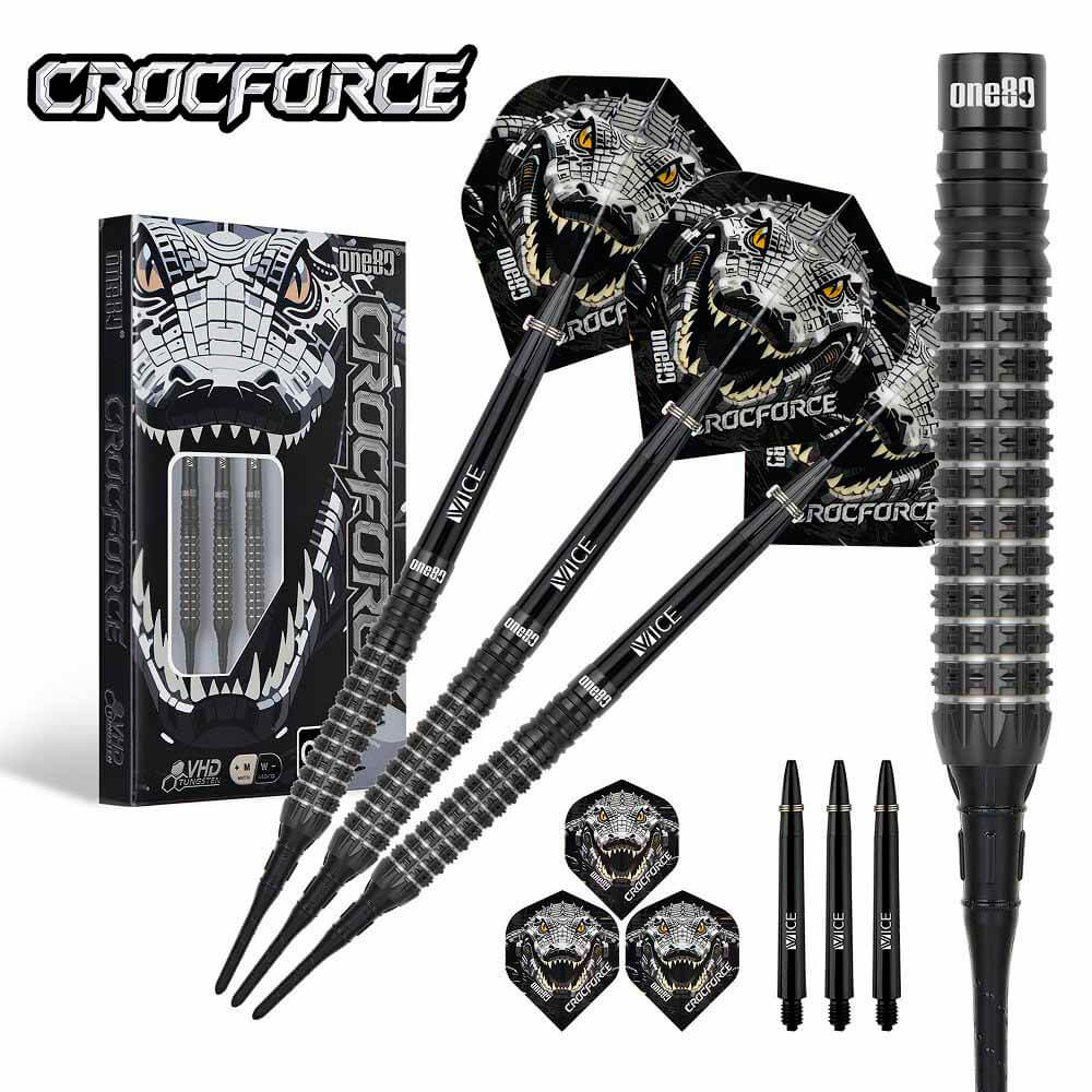 El juego de dardos Crocforce CF2 se compone por 1 set de 3 cuerpos, 1 set de 3 cañas , 1 set de 3 plumas y 1 set de 3 puntas 2ba.