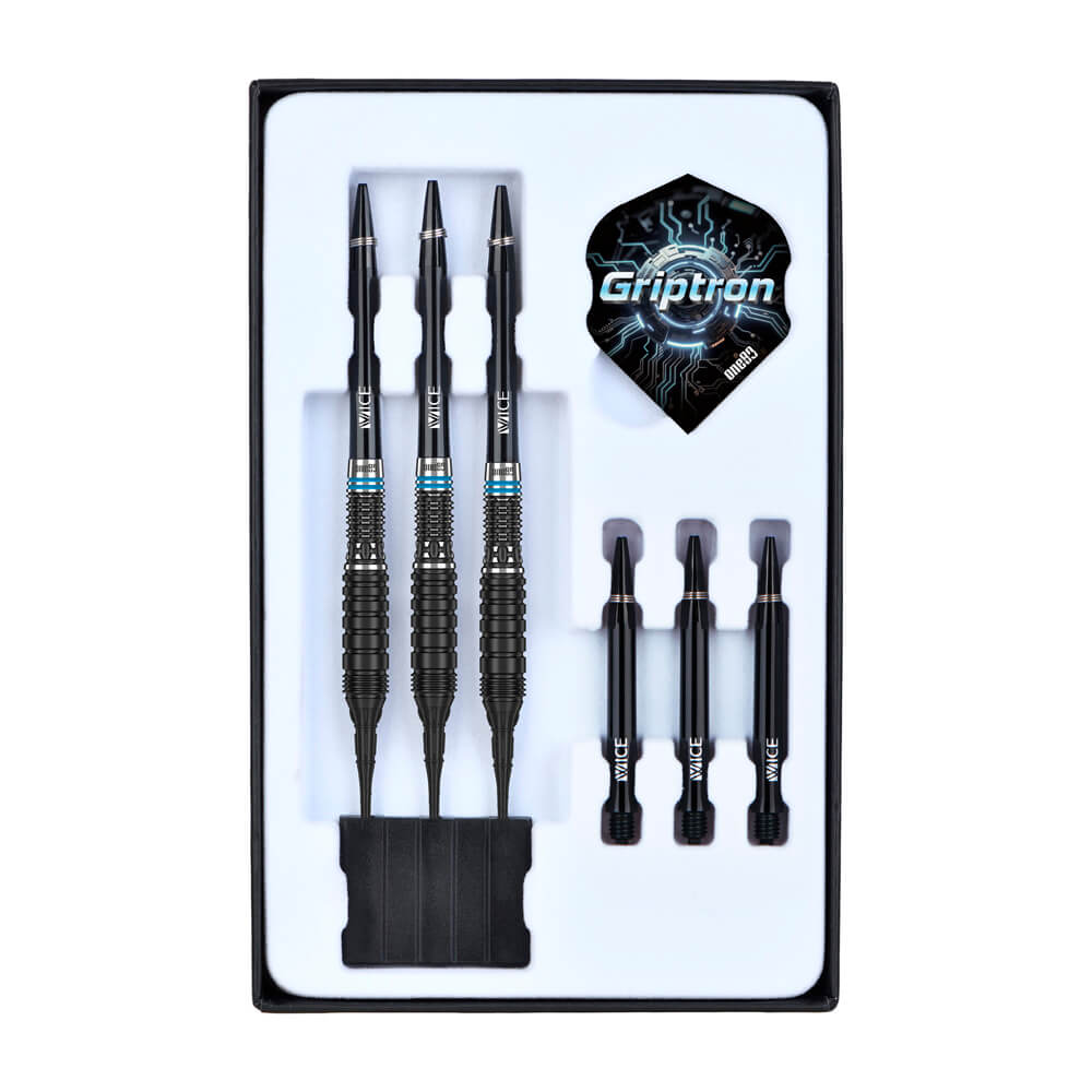 El juego de dardos Griptron GT3 se compone por 1 set de 3 cuerpos, 1 set de 3 cañas y 1 set de 3 plumas