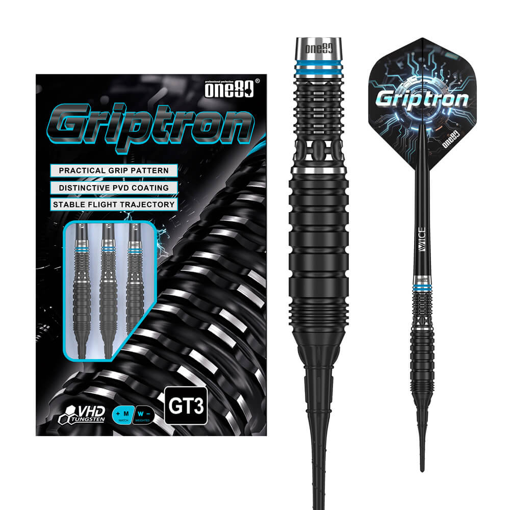 DESCRIPCIÓN:Los dardos ONE80 Griptron GT3 90% son la opción ideal para jugadores ambiciosos que valoran la calidad y la precisión. Con un 90% de tungsteno, estos dardos ofrecen máxima durabilidad y un diseño elegante y profesional. Sus anillos y fresados lacados en negro le confieren un aspecto elegante, convirtiéndolos en la mejor opción entre los dardos de punta de plástico.