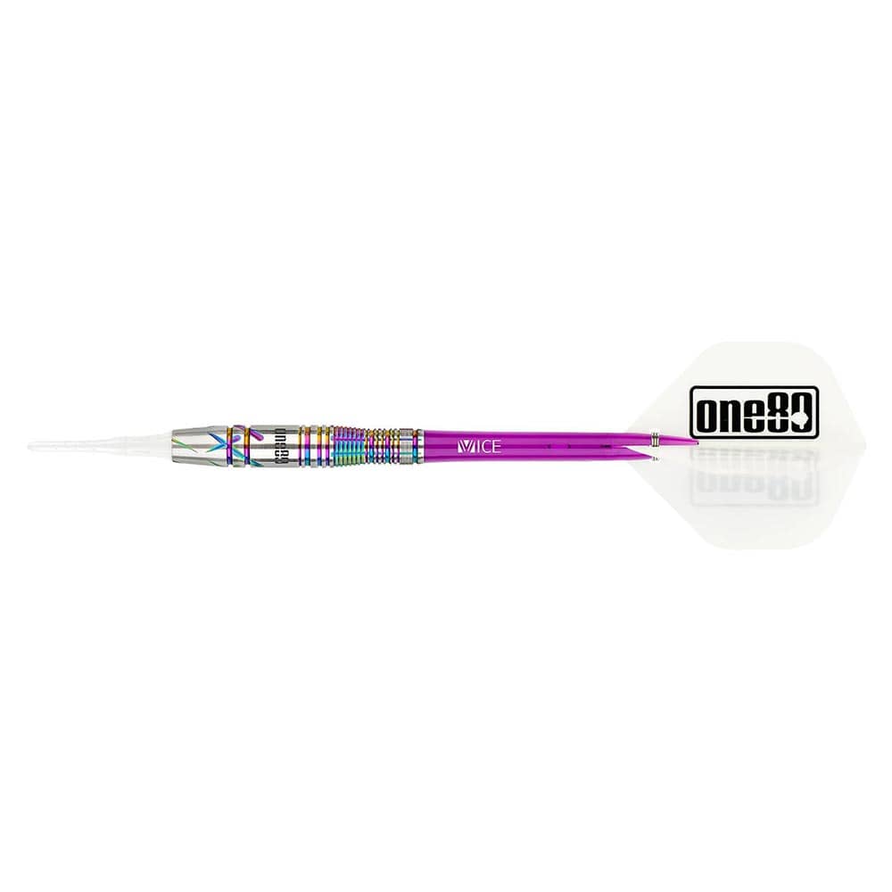 El juego de dardos Mitsuhiro Shimazu Sunny GG se compone por 1 set de 3 cuerpos, 2 sets de 3 cañas Vice, 1 set de 3 plumas One80, 3 puntas de plástico Lippoint premium blanco 2ba y 1 protector de puntas
