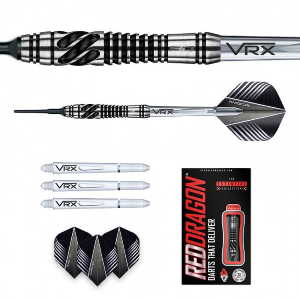 El juego de dardos se compone por 1 set de 3 cuerpos Askari Red Dragon, 1 set de 3 cañas y 1 set de 3 plumas Red Dragon.