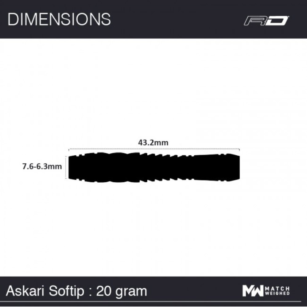 Los dardos Askari por su forma del cuerpo es uno de los modelos mas completos ya que incorpora mas de 3 tactos diferentes en su cuerpo desde zonas lisas, agarre anillado y un agarre muy particular del Askary rebajado de forma ladeada, sin duda el dardo Askari es un gran dardo y Red Dragon a marcado un antes y después con el diseño de este modelo.