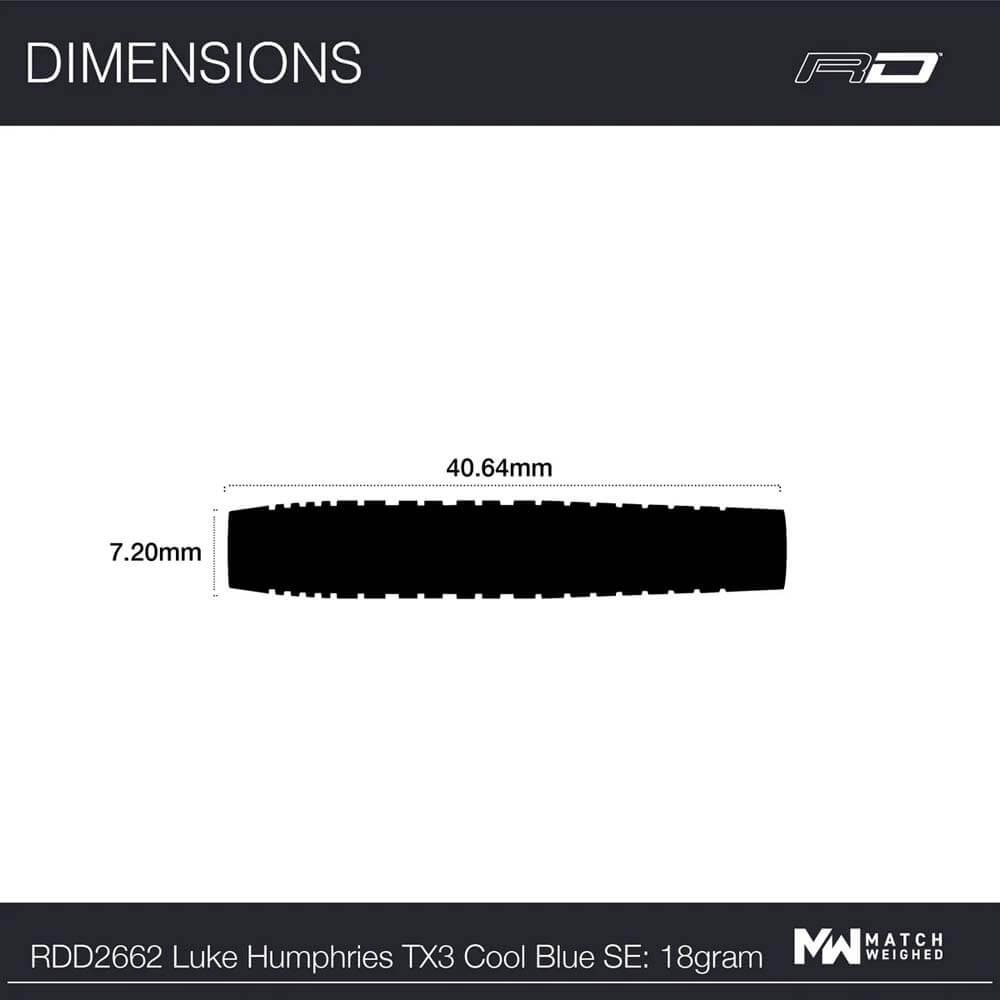 El juego de dardos se compone por 1 set de 3 cuerpos Luke Humphries TX3 Blue, 1 set de 3 cañas Red Dragon y 1 set de 3 plumas Red Dragon y 1 set de 3 puntas de plástico 2ba