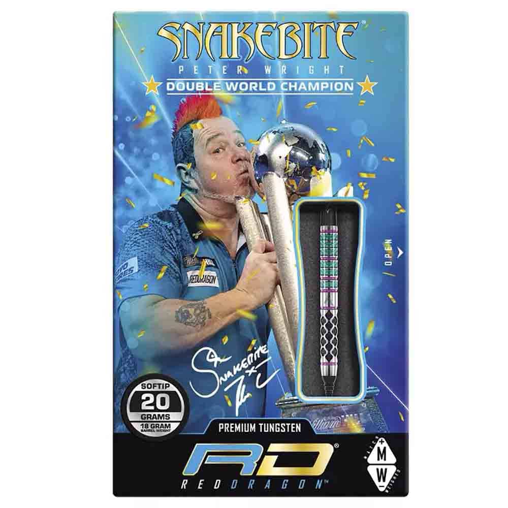 El juego de dardos e compone por 1 set de 3 cuerpos Peter Peter Wright Supa Venom 90% , 1 set de 3 puntas 2ba,1 set de 3 cañas y 1 set de 3 plumas Red Dragon.