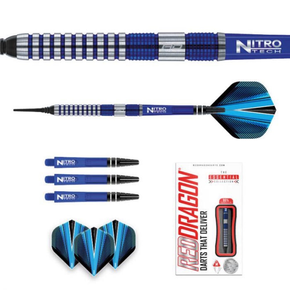 El juego de dardos e compone por 1 set de 3 cuerpos Red Dragon Range 1 Polaris, 1 set de 3 cañas Red Dragon, 1 set de 3 plumas Red Dragon y 1 set de 3 puntas.