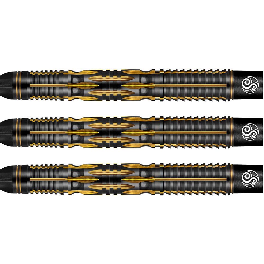 Diseñado en estrecha colaboración con el propio African Warrior, The Greatness es un prestigioso barril en forma de misil de tungsteno al 90 % revestido en titanio negro protector con detalles en oro PCT. Con un equilibrio preciso en la parte media trasera, su punta cónica con doble agarre tipo shark presenta ranuras adicionales para un posicionamiento uniforme de los dedos. Con nuestro característico agarre Iklwa en la sección media, los motivos profundamente fresados ??crean un círculo de lanzas para un control superior y una liberación sin esfuerzo. Terminado con una cola shark de tiburón de textura 4/5 y un punto de empuje ligeramente hacia atrás desde el centro, lanza The Greatness desde cualquier lugar, sabiendo que dará en el blanco.