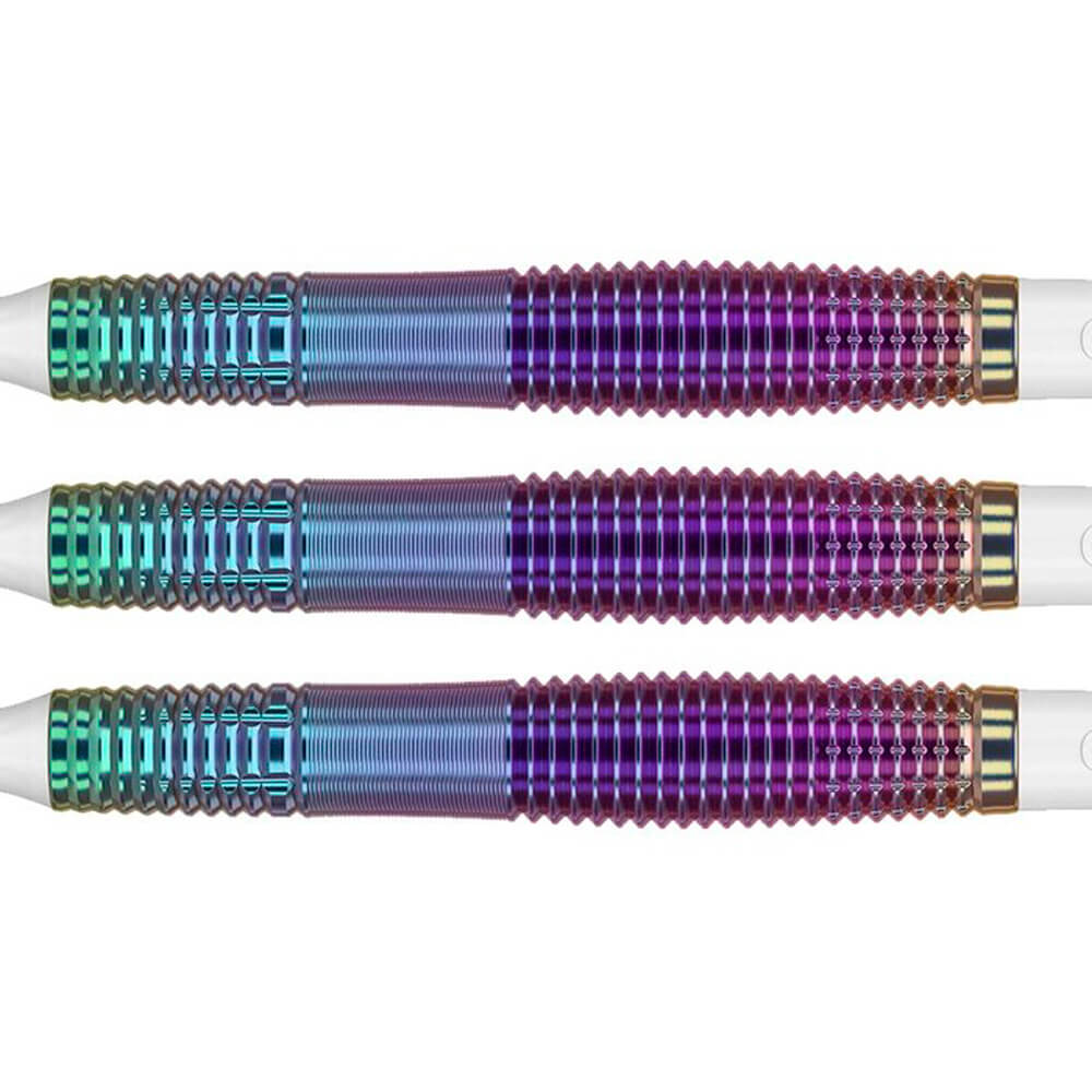 DESCRIPCIÓN:El Rising Sun Generation 8 All Grooved es una evolución disruptiva del modelo estándar de Haruki Muramatsu. A diferencia de las versiones tradicionales que segmentan las zonas de agarre, este modelo "All Grooved" (completamente estriado) nace de una petición personal del jugador para maximizar la tracción y la versatilidad en cualquier punto de contacto. El barril está cubierto íntegramente por una combinación de ranuras en forma de V y microranuras. Esto elimina las "zonas muertas" de agarre, permitiendo que el jugador sujete el dardo desde cualquier posición con la misma sensación de seguridad.