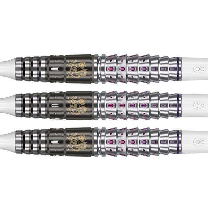 El juego de dardos se compone por 1 set de 3 cuerpos Target Japan Mayo G6 Max, 1 set de 3 plumas K-Flex Target Japan y 3 puntas 2ba Target Pixel Tip.