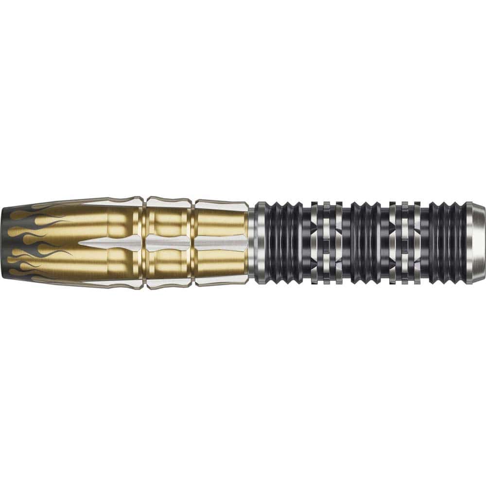 El juego de dardos se compone por 1 set de 3 cuerpos Target Japan Pyro Gen11, 1 set de 3 Plumas con caña integrada Target K-Flex y 1 set de 3 puntas de plástico Target Pixel Tip 2ba.