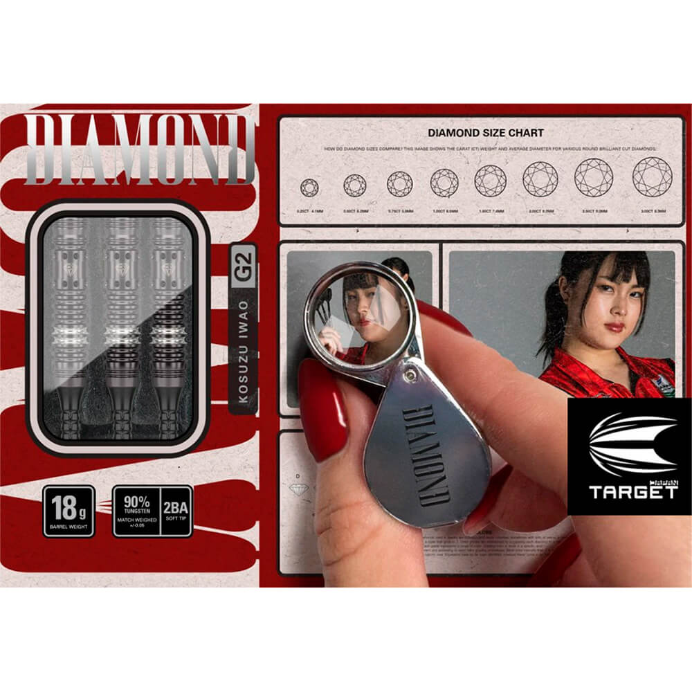 El juego de dardos se compone por 1 set de 3 cuerpos Japan Kosuzu Iwao Diamond G2, 1 set de 3 plumas modelo K-FLEX y un set de 3 puntas 2ba 4mm.