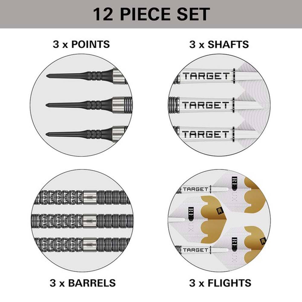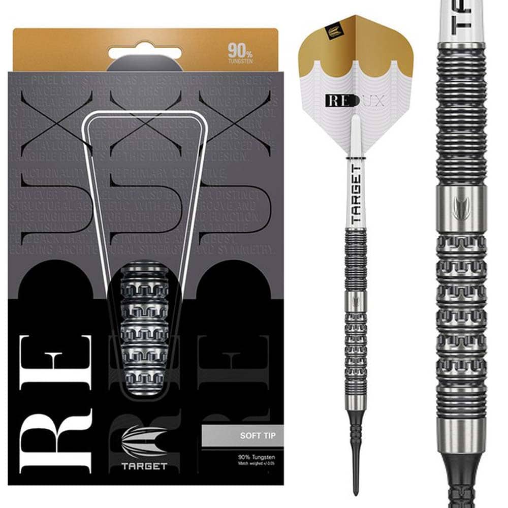 DESCRIPCIÓN:La gama de dardos Redux se inspira en los intrincados detalles de nuestros agarres de barril con corte pixelado: una sorprendente combinación de forma y función. Cada barril, compuesto por un 90 % de tungsteno, está adornado con finos cortes en forma de diamante, lo que proporciona un control y un equilibrio excepcionales en cada lanzamiento. Las sutiles ranuras radiales en la parte delantera y trasera permiten una colocación sencilla de los dedos, dándote la libertad de adaptar el agarre a tu estilo.