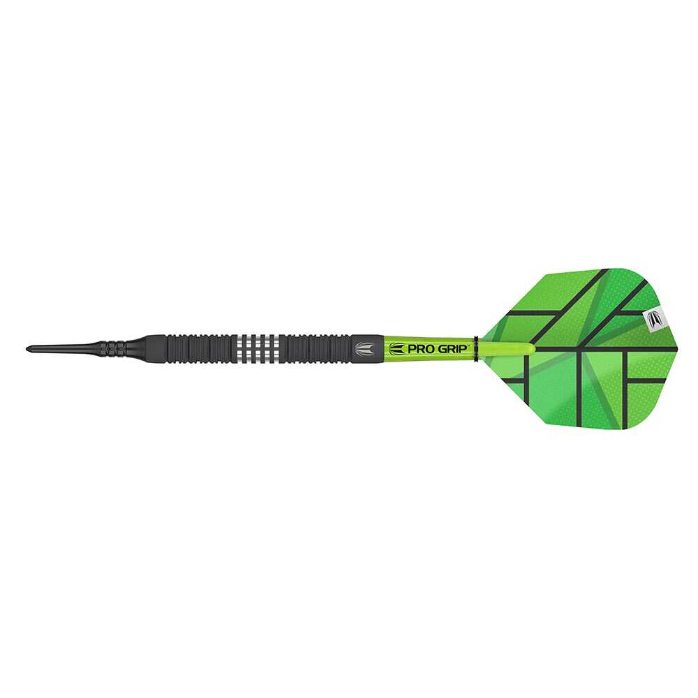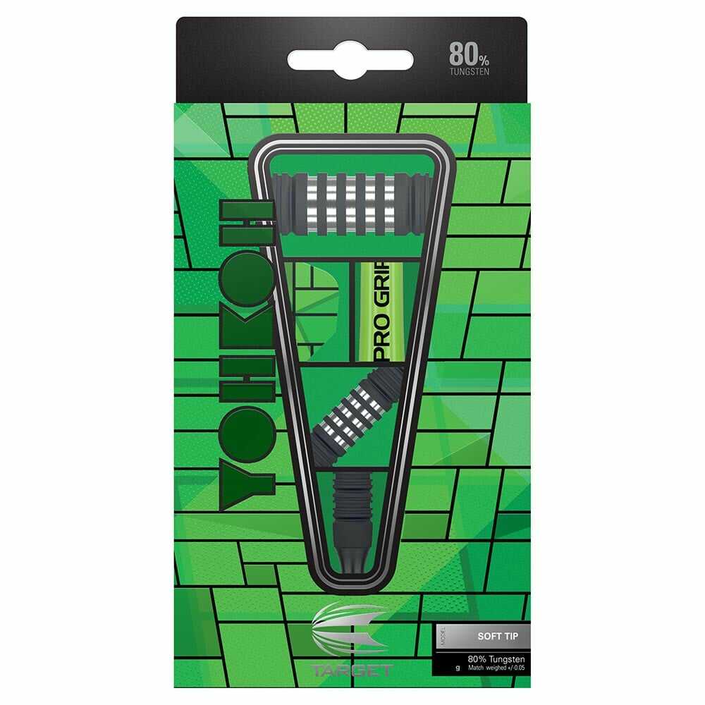 El juego se compone por 1 set de 3 cuerpos de dardos Yohkoh 10 18gr, 1 set de 3 cañas Pro Grip Short Verde, 1 set de 3 plumas Pro Ultra, 3 puntas Target Pixel Tip y 1 pequeña funda de cuero negra.