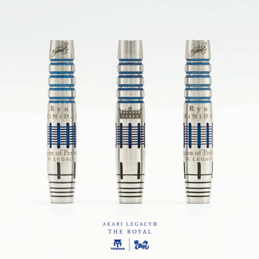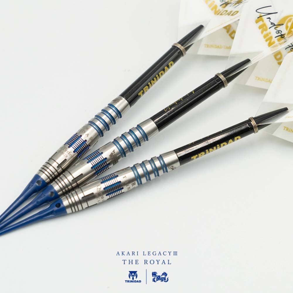 El juego de dardos Trinidad Akari Legacy The Royal 3 se compone por 1 set de 3 cuerpos , 1 set de 3 plumas Trinidad, 1 set de cañas Trinidad y 1 set de 3 puntas de plástico 2ba