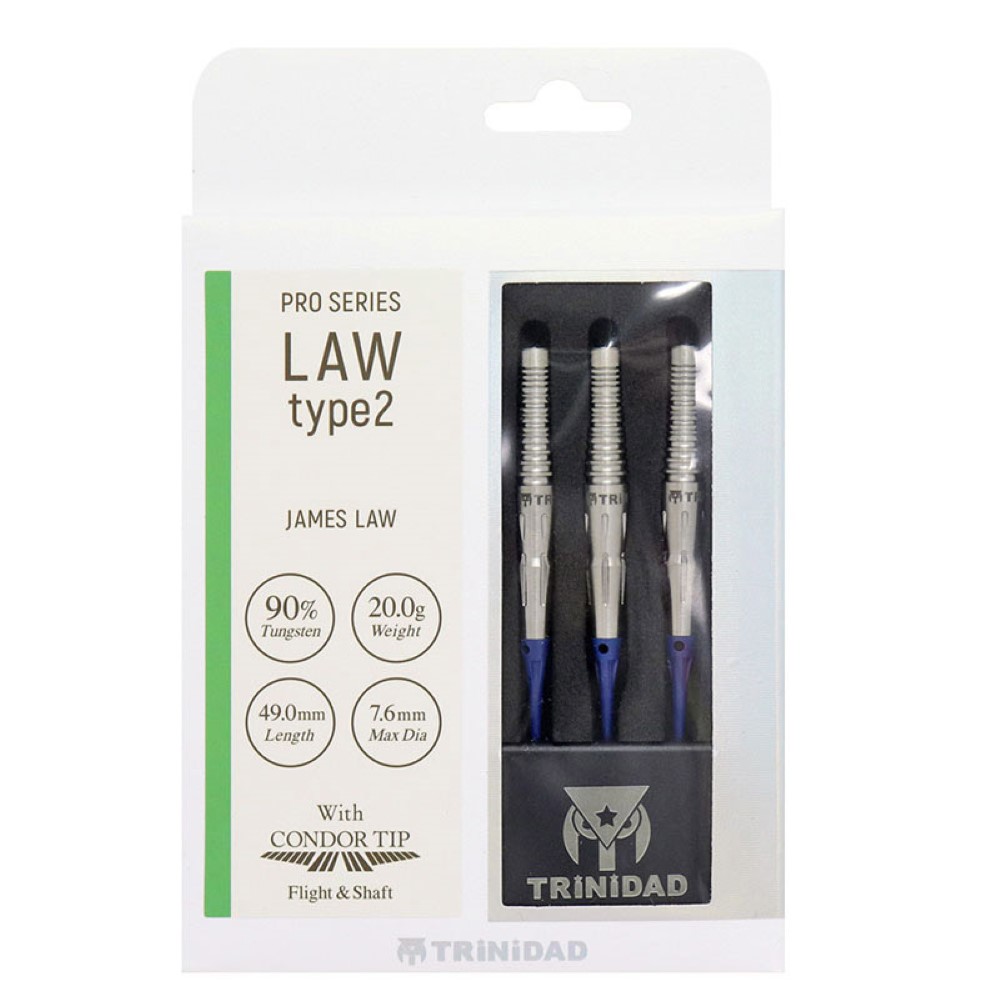 DESCRIPCIÓN:Dardos de gran calidad modelo Law Type 2 con un 90% de tungsteno fabricados por Trinidad Darts y diseñador por James Law.