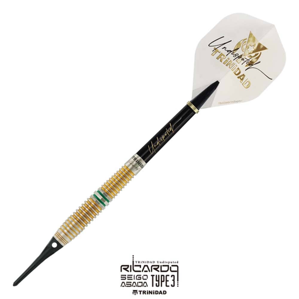 El juego de dardos Trinidad Ricardo Type 3 se compone por 1 set de 3 cuerpos , 1 set de 3 plumas Trinidad, 1 set de cañas Trinidad y 1 set de 3 puntas de plástico 2ba