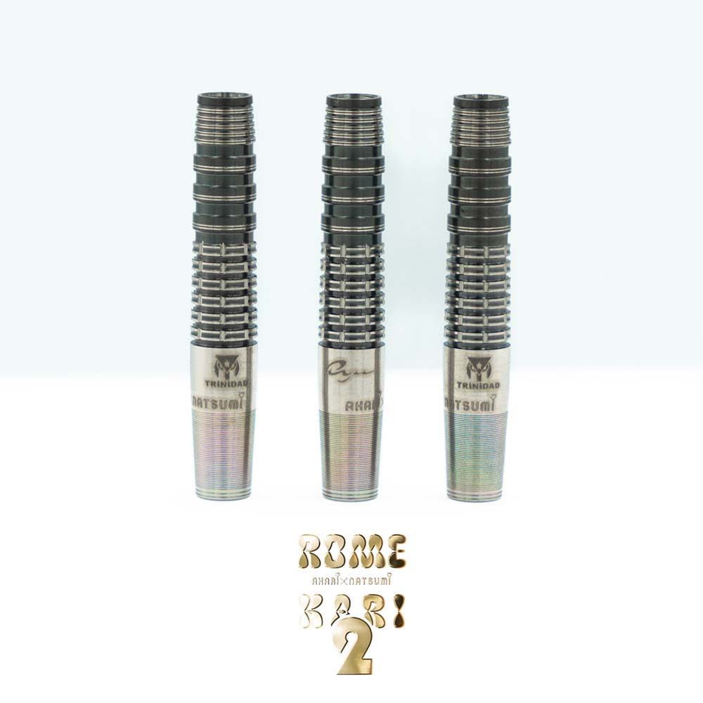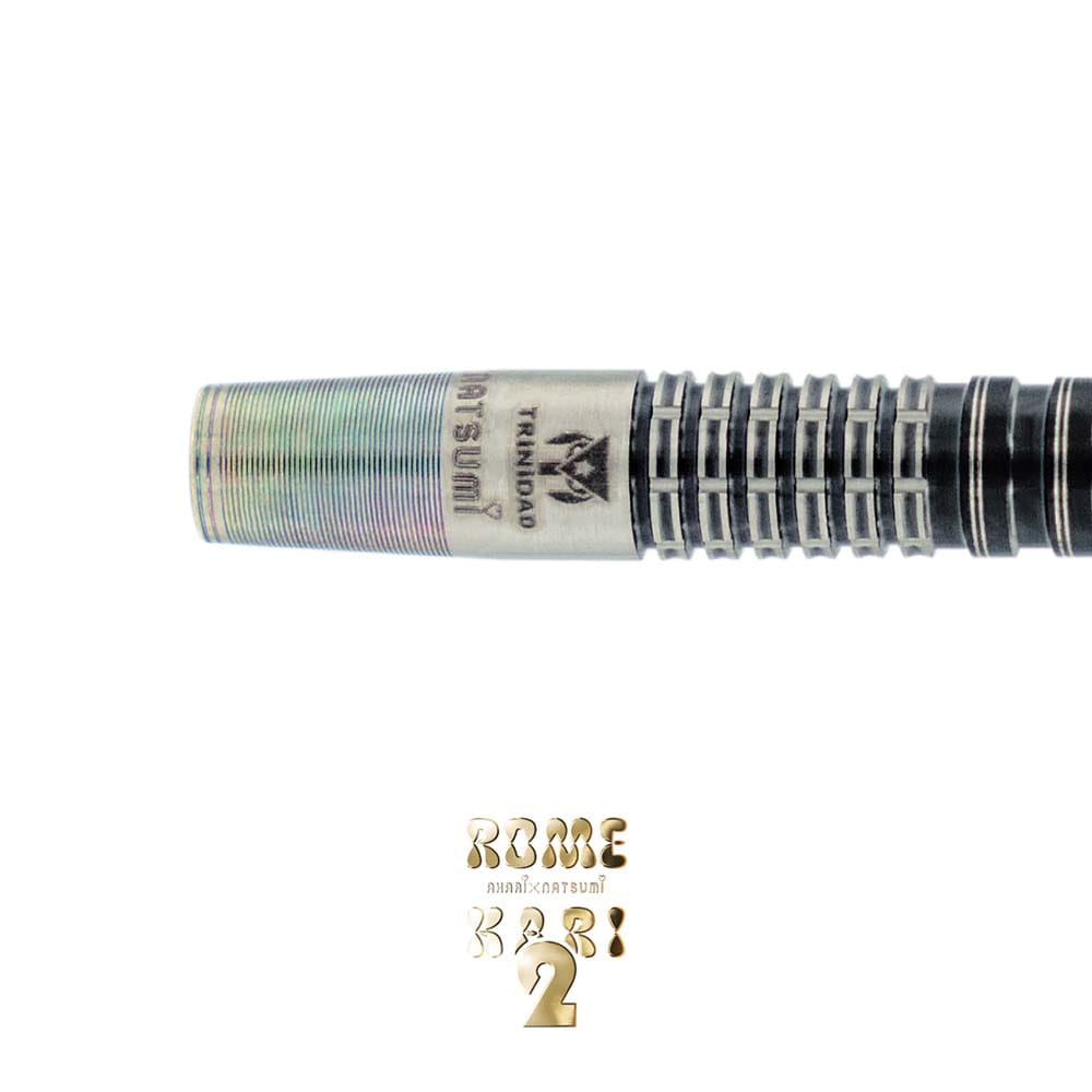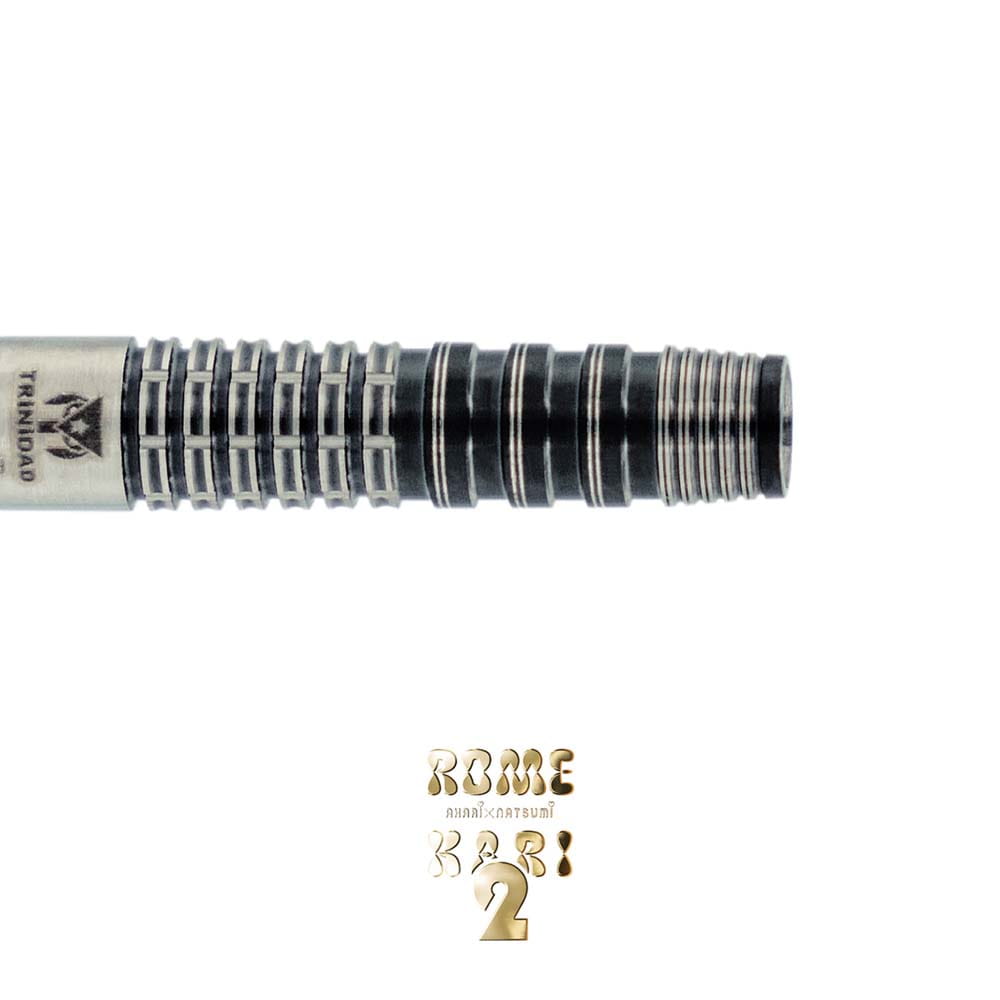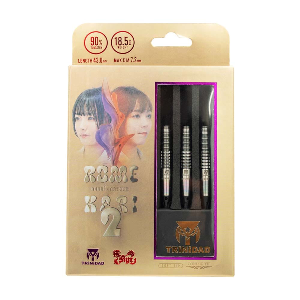 El juego de dardos Trinidad Romekari 2 se compone por 1 set de 3 cuerpos, 1 set de 3 plumas Trinidad, 1 set de cañas Trinidad y 1 set de 3 puntas de plástico 2ba