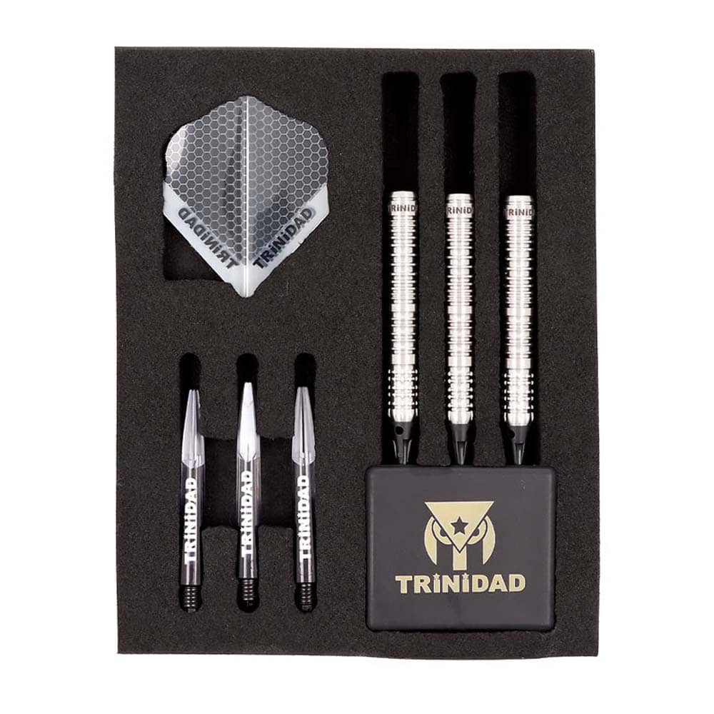 El juego de dardos se compone por 1 set de 3 cuerpos Yoriboy Type2, 1 set de 3 plumas Trinidad 1 set de 3 cañas Trinidad y 3 puntas de plástico 2ba.