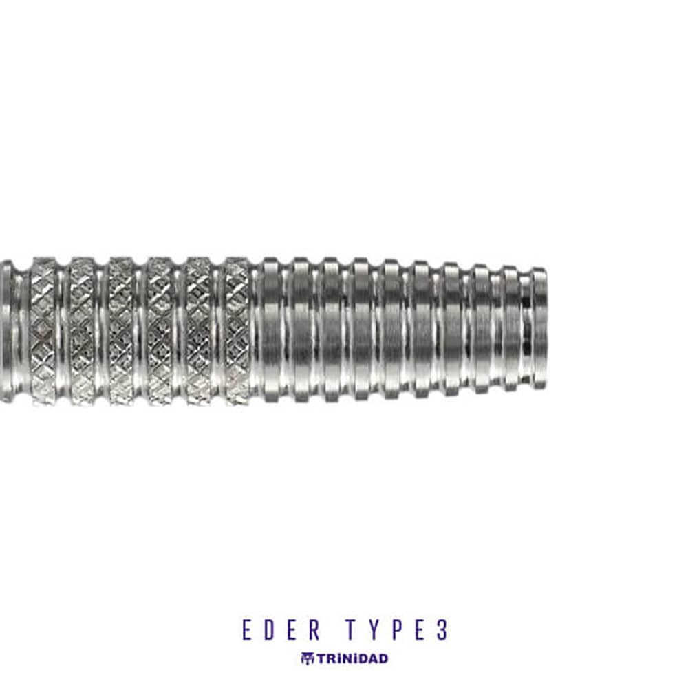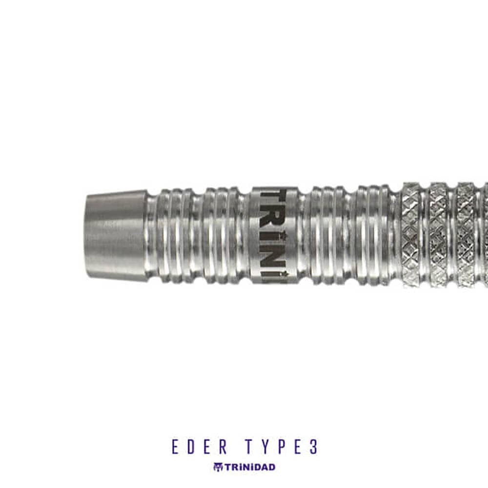 El juego de dardos Trinidad Eder Type 3 se compone por 1 set de 3 cuerpos Eder , 1 set de 3 plumas Condor, 1 set de 3 puntas 2ba 4mm y 1 set de 3 puntas 2ba 4mm