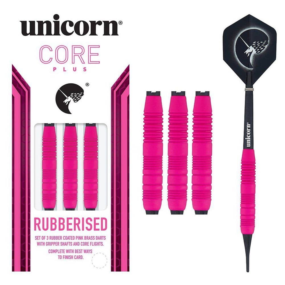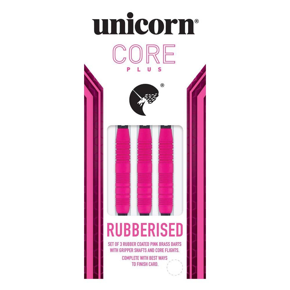El producto se compone por 1 set de 3 cuerpos de dardos Rubberised Pink de Unicorn Darts ,1 set de 3 plumas, 1 set de 3 cañas y 3 puntas de plástico.