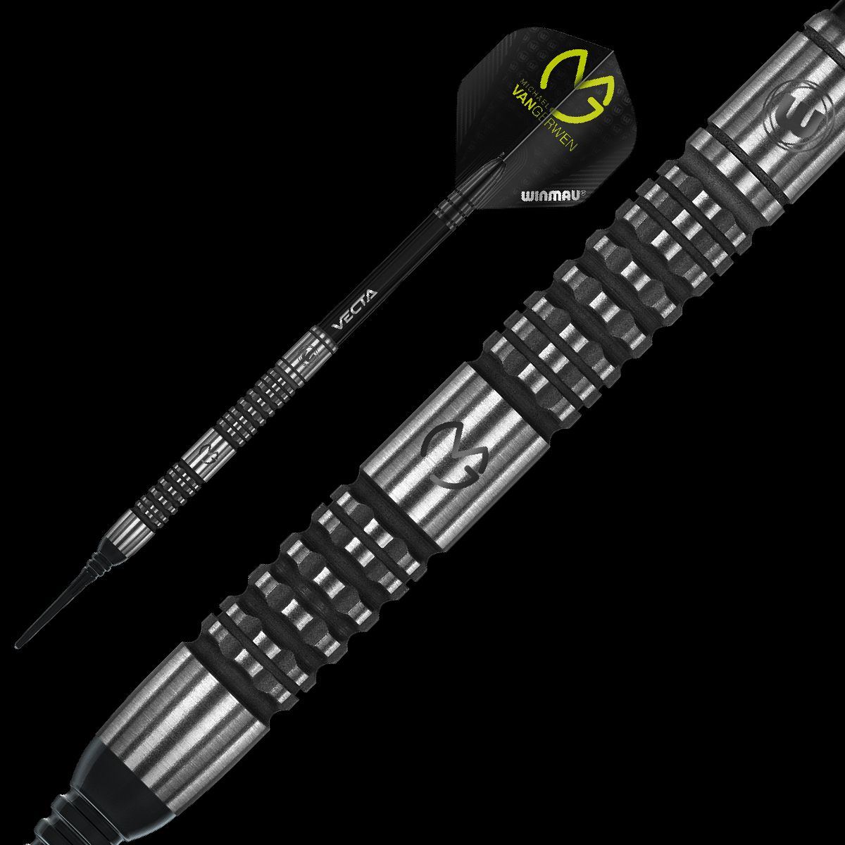 Dardos con cuerpo con agarre de gran calidad y muy trabajado, este modelo es el que usa el jugador en sus partidas televisadas, el tipo de agarre que incorpora anonizado es un guiño estético a la nueva arquitectura con los controles mas altos exigidos por el propio jugador Michael Vangerwen. Gracias al diseño de ingeniería de miles de horas Winmau Darts han podido crear este maravilloso dardo que a sido capaz de satisfacer a el campeón nº1 del mundo Michael Vangerwen.