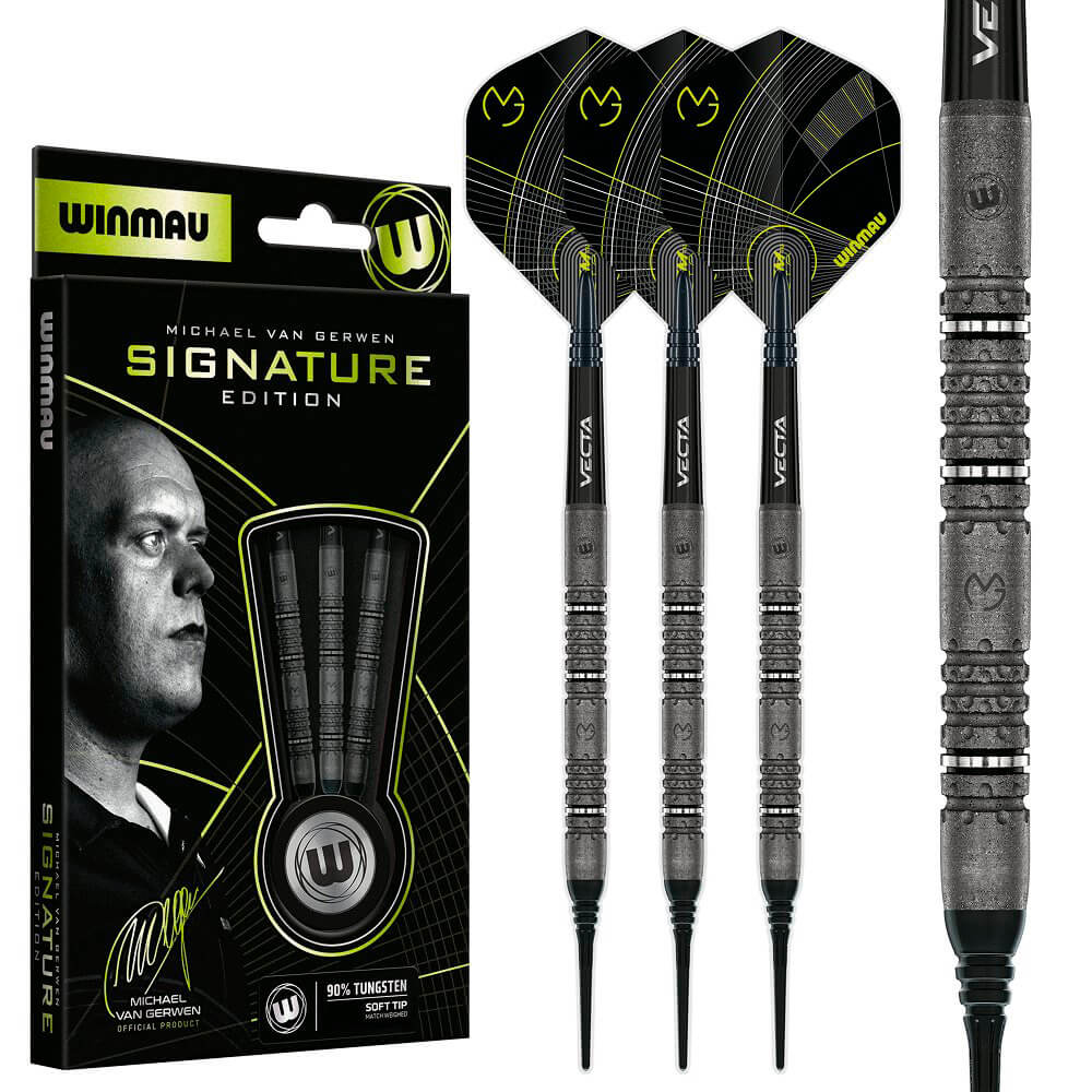 Dardos con cuerpo con agarre de gran calidad y muy trabajado, este modelo es el que usa el jugador en sus partidas televisadas, el tipo de agarre que incorpora anonizado es un guiño estético a la nueva arquitectura con los controles mas altos exigidos por el propio jugador Michael Vangerwen. Gracias al diseño de ingeniería de miles de horas Winmau Darts han podido crear este maravilloso dardo que a sido capaz de satisfacer a el campeón nº1 del mundo Michael Vangerwen.