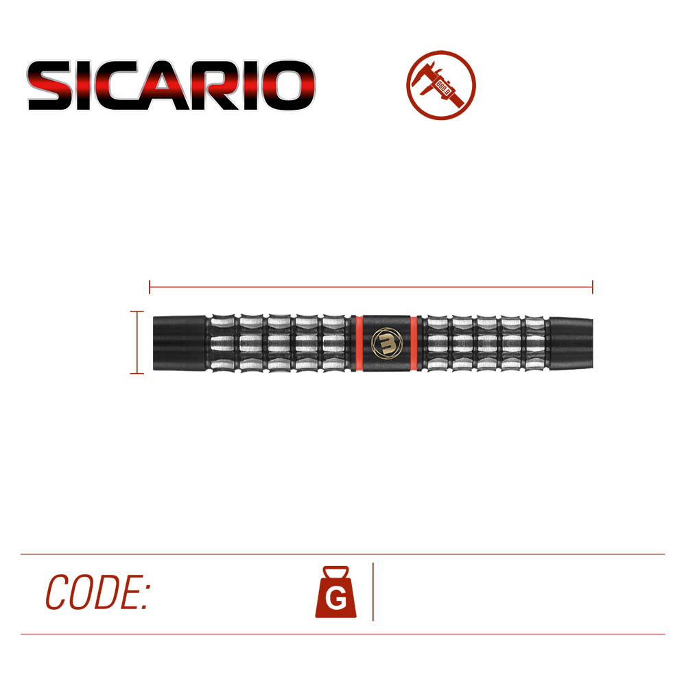 El dardos Sicario lo que a simple vista mas nos llama la atencion es su barril con acabado en color negro, con detalles en placa y rojo, es un dardos con un buen agarre y un trabajo de decoletaje excelente, es un dardos que según nuestro primera toma de contacto va a ser capaz de satisfacer a jugadores de dardos muy exigentes.