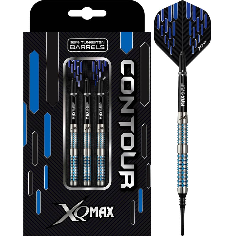 DESCRIPCIÓN:Juego de dardos XQ Max Contour 20 gramos 95% tungsteno con punta de plástico. Los dardos Contour presentan un barril largo y paralelo. Con una zona lisa central que separa sus dos zonas de agarre. En la zona de la caña tiene puntos grabados sobre cortes horizontales y en la zona de la punta va alternando entre líneas verticales y horizontales, todo ello acabado con una capa de titanio azul, creando así este hermoso dardo con un aspecto agresivo.