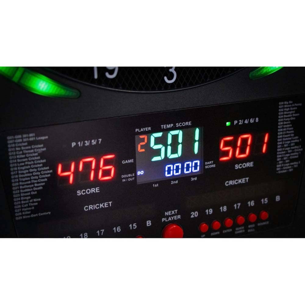 Pantallas LED duales: con dos pantallas LED claras y brillantes, este tablero de dardos acomoda fácilmente hasta 8 jugadores , manteniendo la puntuación visible y accesible para todos, ya sea que esté organizando un juego informal o un torneo.