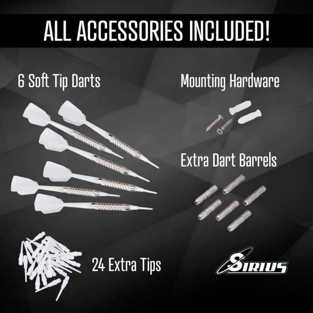 Lo mas importante a resaltar de la Sirius son sus segmentos de gran calidad, experiencia de puntuacion de dardos mejorada, 32 juegos y 8 jugadores, interfac simple durante el juego de dardos y que lleva todo incluido para jugar.