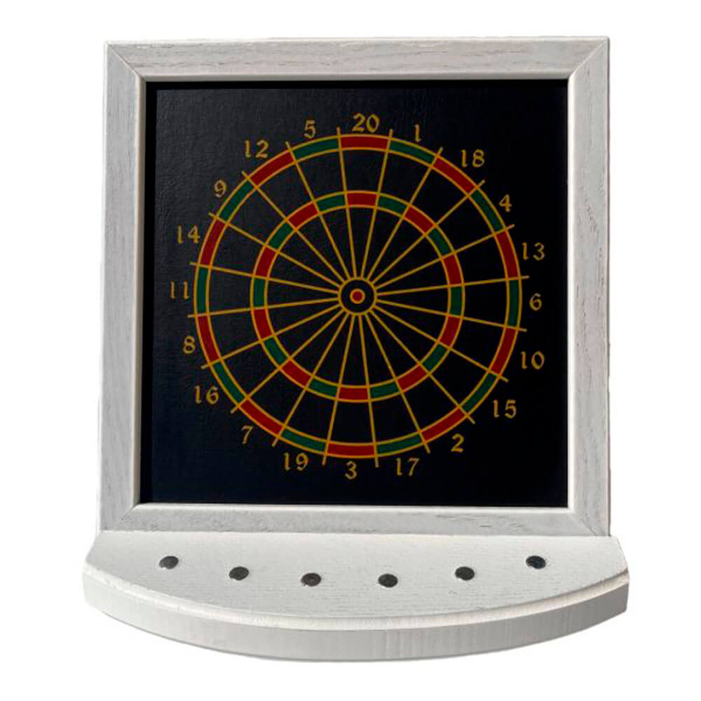 DESCRIPCIÓN:Mini diana magnética de alta calidad, fabricada en madera auténtica teñida en blanco grisáceo.